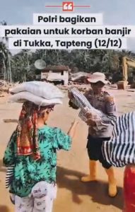 Rilisberita.id,Sumut- Kepedulian Polres Tapanuli Tengah (Tapteng) terus hadir di tengah duka warga terdampak banjir dan longsor di Kecamatan Tukka, Kabupaten Tapteng, Sunatera Utara. Jajaran Polres Tapteng menyalurkan bantuan pakaian dan selimut kepada warga yang kehilangan harta benda akibat bencana alam.