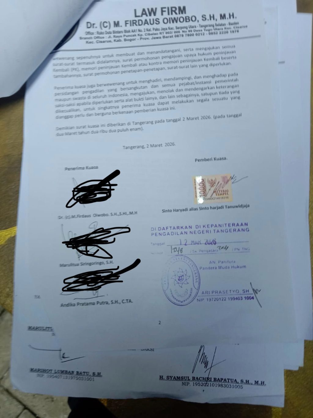 Rilisberita.id,jakarta – Dr. Firdaus oiwobo bersama team LAW FIRM M FIRDAUS OIWOBO resmi mendaftarkan gugatan di Pengadilan Negeri, setelah Surat Kuasa nya telah diterima hari Jumat, tanggal 13 Maret 2026.